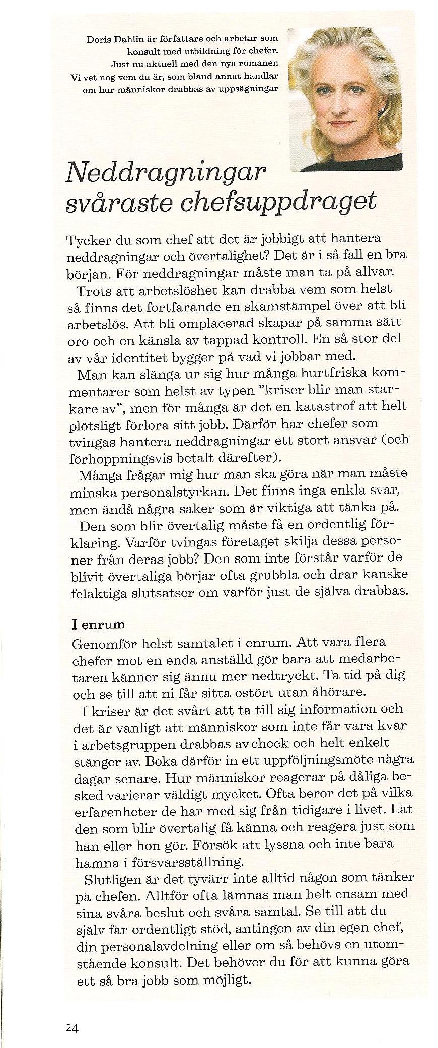 Hantera uppsägningar på ett snyggt sätt - artikel Dagens Ledare sep-08